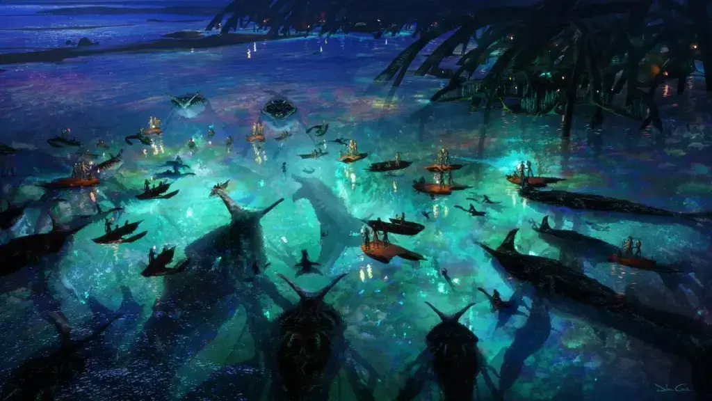 Aunque aún no tenemos un tráiler, Cameron compartió cinco piezas de arte conceptual en donde se nos da el primer vistazo a la tribu de fuego en Pandora. Estos Na’vi son descritos como un pueblo agresivo, el cual tiene elementos nómada, y representarán un nuevo reto para el protagonista, quien está tratando de unir a todos los Na’vi para combatir la invasión humana.