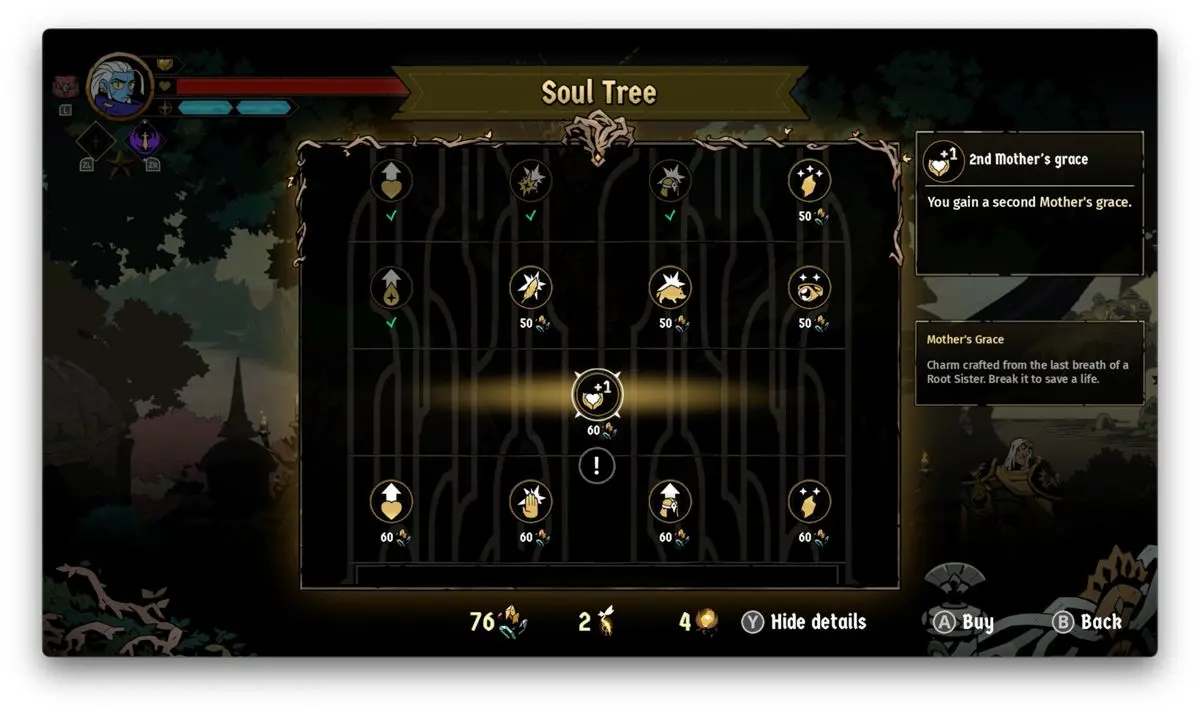 Cada que seas eliminado y el run termine, se te subirá de nivel para darte una serie de objetos que te sirven para comprar más arcanas o para mejor tu afinidad con ciertos rituales, además, a lo largo de tu intento, recolectarás unos cristales de colores que son para comprar mejoras permanentes como aumentos a tu barra de vida o que simplemente hagas más daño con ciertas acciones. Como ya te lo contaba, en Absolum sí se siente un muy marcado crecimiento de tus personajes que claro, hace que llegar al final sea cada vez más sencillo.