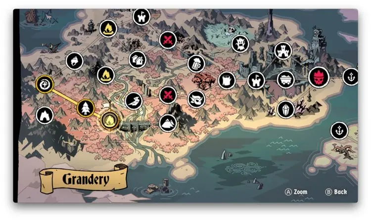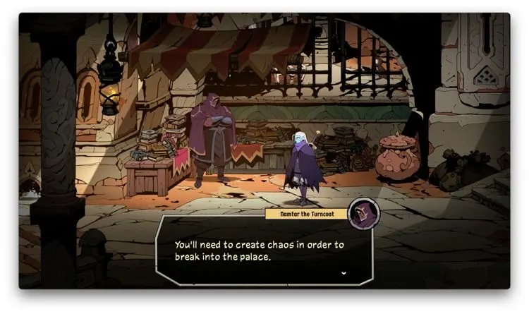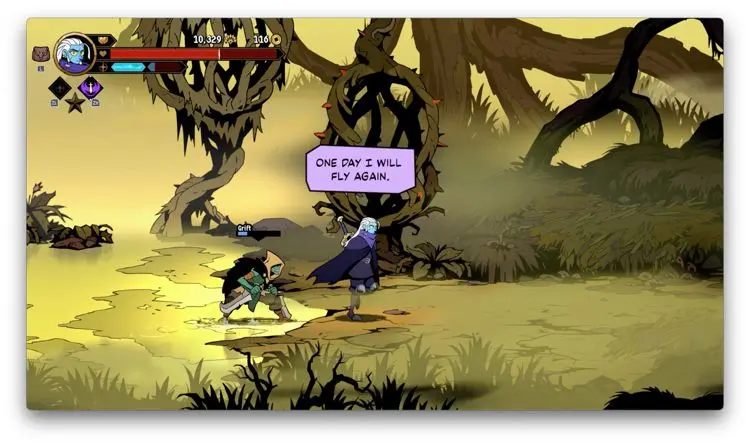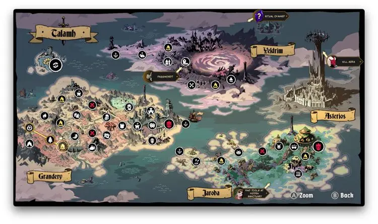 Luego de dicha introducción comenzamos a recorrer los continentes de Talamh, en los que vas conociendo a diferentes personajes, cada uno con sus propios intereses. Lo más interesante de esto es que conforme vas completando los distintos quests de Absolum, sus habitantes van cambiando su perspectiva o forma de ver las cosas. Acá no es como que el tiempo regrese ni nada. Nuestras acciones tienen un impacto como tal en la historia, pues más bien nosotros revivimos y ya. Por supuesto, los enemigos también llegan a cambiar sus diálogos dependiendo de lo que hayas hecho en tus intentos pasados y la verdad es que conocer más de este mundo y de este relato de opresión y persecución, ha sido un deleite, sobre todo por lo actuales que son estos temas en nuestra realidad.