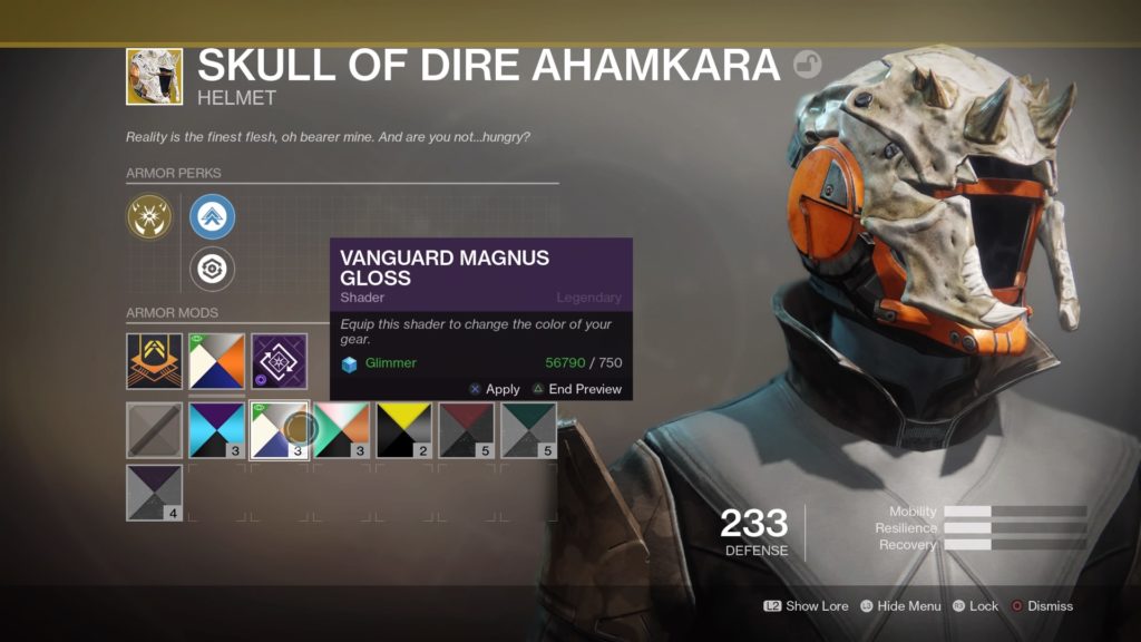 Algo muy extraño y que no terminó por gustarnme del todo es que los shaders con los que cambias de color tus pertenencias son ahora individuales. Es decir, que puedes usar un shader para tu casco y otro completamente para tus guantes y botas. Eso hace que estés de diferentes colores todo el tiempo. Si deseas que sea unánime en el mismo color, necesitarás usar el mismo shader en todo tu equipo, pero no siempre contarás con las unidades suficientes y tendrás que comprarlos o esperar a encontrarlos como premio. Puedes usar los shaders también en armas, naves, Ghosts y Sparrows.