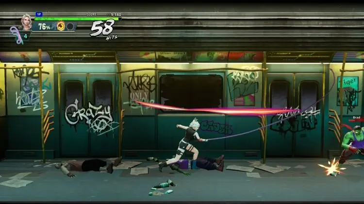 Desde secciones de plataformas que no tienen sentido, hasta enemigos que están posicionados solo para molestar al jugador, es indiscutible que Yuke’s no tiene un gran entendimiento de qué es lo que hace especial a los beat’em up. Esto también se puede sentir en el control. Aunque todas las habilidades especiales que hay a nuestra disposición son bastante interesantes, como un movimiento que funciona como contraataque u otro que elimina a todos los enemigos en pantalla, ninguno es divertido de usar.
