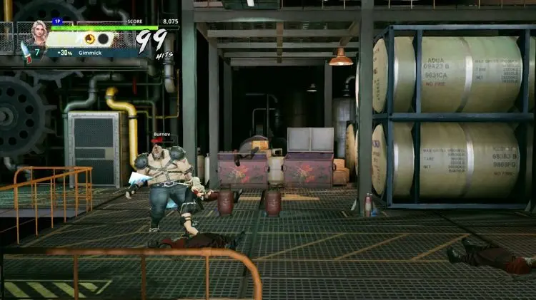 Es muy lamentable que este sea el ciclo de juego en Double Dragon Revive, y es que el título tiene un par de ideas interesantes. El gran atractivo de esta entrega es el hecho de que los escenarios son interactivos. Dependiendo del movimiento que hagas, puedes lanzar enemigos a ciertos obstáculos que los eliminan inmediatamente. Esto va desde algo muy simple, como aventarlos de un risco, hasta meterlos en refrigeradores o hacer que choquen contra corrientes de luz. En teoría, esto le da una mayor profundidad al combate, pero la ejecución es torpe.