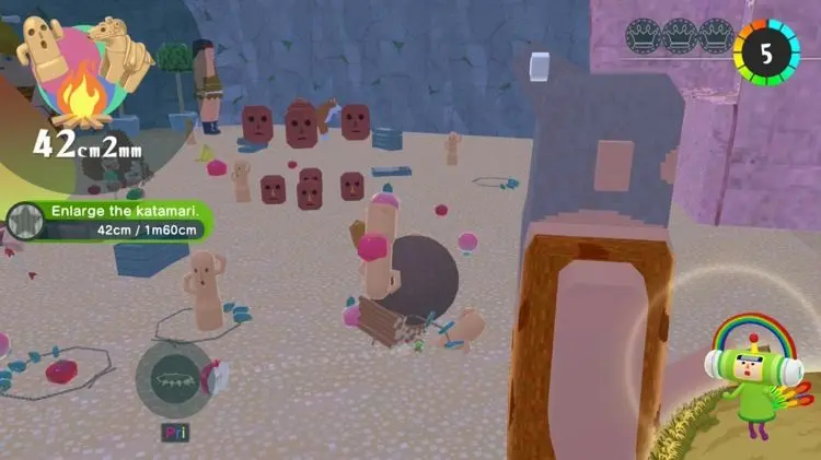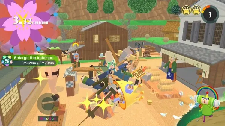A la par, esta entrega introduce un nuevo coleccionable, y es que en cada nivel ahora encontramos tres coronas doradas. Estos objetos no solo desbloquean más niveles, sino que también expanden la exploración, obligando al jugador a considerar su tamaño. No es un concepto nuevo, pero su ejecución funciona de gran forma con la fórmula tradicional de Katamari. Sin embargo, no todo es tan bueno como luce. Si bien hay muchos niveles que logran destacar, también hay varios que llegan a ser muy aburridos.