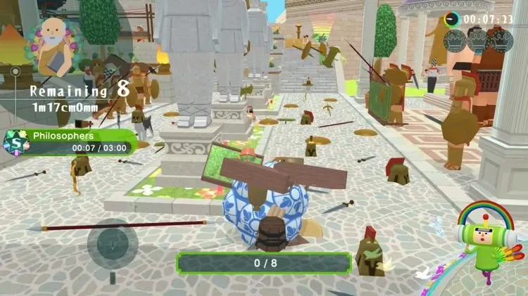 De igual forma, los power ups de Katamari Forever regresan, pero con una serie de novedades. Esto significa que podemos encontrar magnetos que nos permiten recolectar objetos más rápido, o relojes que detienen el tiempo. Por último, pero no menos importante, Once Upon a Katamari también incluye un apartado multiplayer, el cual nos pide recolectar la mayor cantidad de objetos posible, y esto incluye a otros jugadores. Es algo muy básico, y al igual que otros modos similares en entregas pasadas, lo puedes ignorar por completo. Lo único que consigues son monedas para conseguir más objetos cosméticos para el príncipe. Nada del otro mundo, y es algo muy superficial que más de uno opte por ignorar.