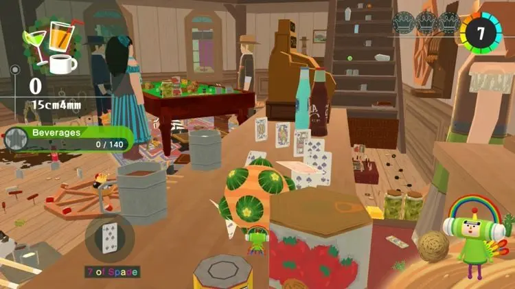 El Japón de la era Edo es muy diferente a la Grecia antigua o a la prehistoria. Cada locación tiene una gran atención al detalle, conservando la arquitectura o la ambientación correspondiente, sin afectar el diseño de niveles tan característico de Katamari. Sin embargo, hay un claro preferido en todo lo que la nueva entrega nos presenta, y es que el título le da un mayor peso a Japón sobre las otras locaciones. Es algo decepcionante ver que el Viejo Oeste solo tiene un par de niveles que se limitan a una cantidad y una mina, mientras que el país del Sol Naciente nos permite explorar toda una ciudad en medio de una gran fiesta.
