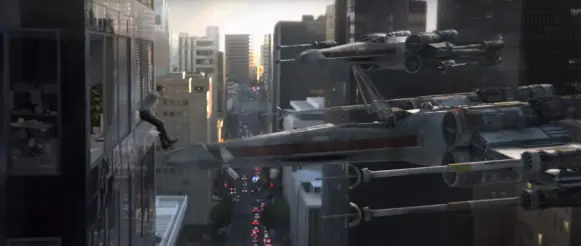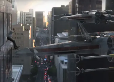 Admitámoslo, si pudiésemos hacer lo mismo que el sujeto no dudaríamos el realizarlo. No todos los días te ofrecen saltar de un edificio y caer a bordo de la cabina de un X-wing ¿saben?
